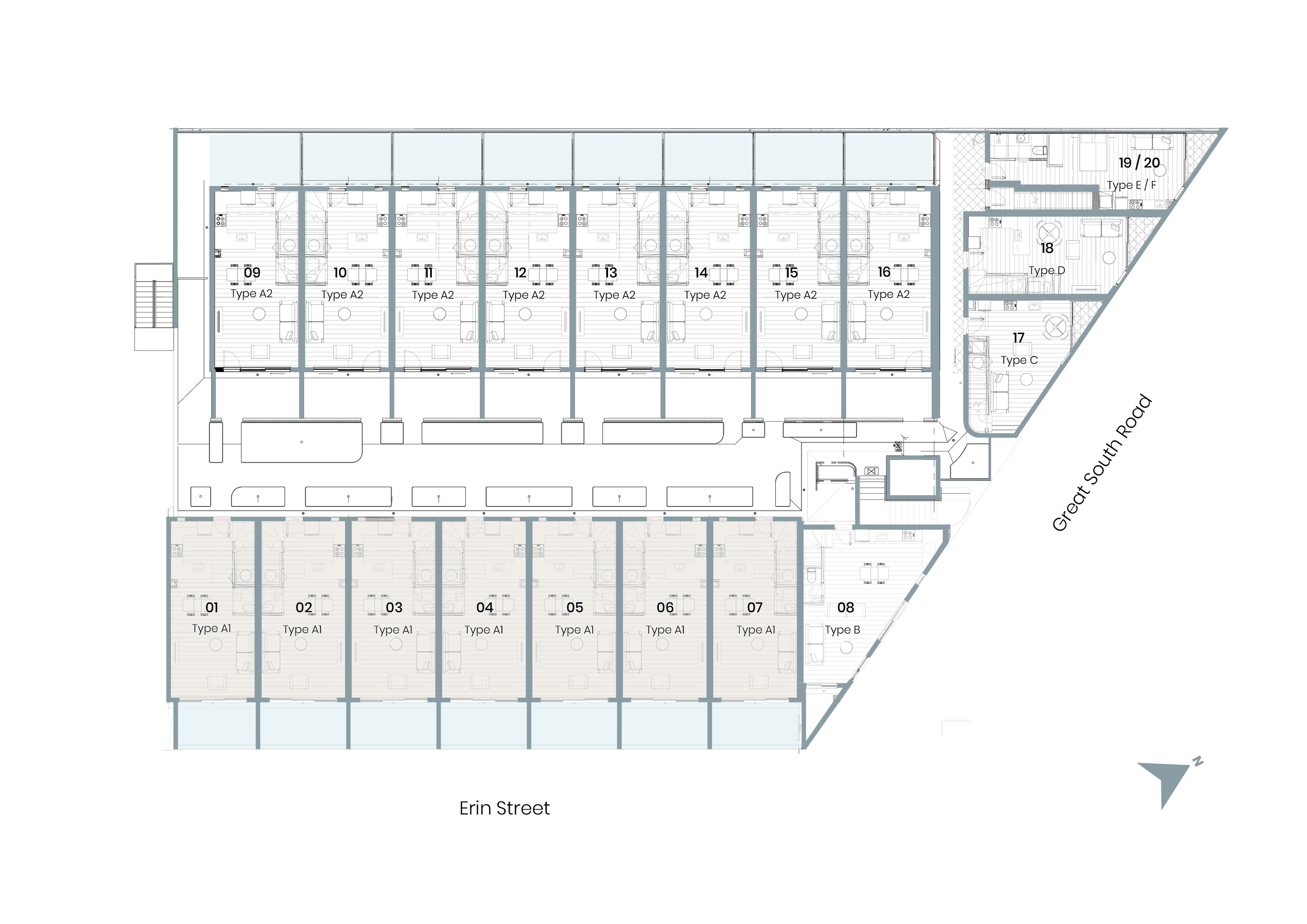 A1 is a thoughtfully designed 120sqm east-facing home (excluding two underground car parks) that captures beautiful morning sun and enjoys outlooks toward Mt Hobson and Diocesan. The layout includes three generous bedrooms, each with its own ensuite, plus a dedicated office ideal for working from home or flexible use. A private courtyardextends the living space outdoors, creating a calm, sheltered setting with refined finishes focused on privacy and function.